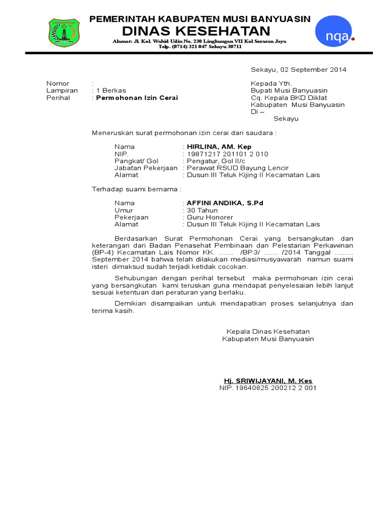 Contoh Surat Izin Cerai Dari Atasan Bagi Guru Berbagi Otosection
